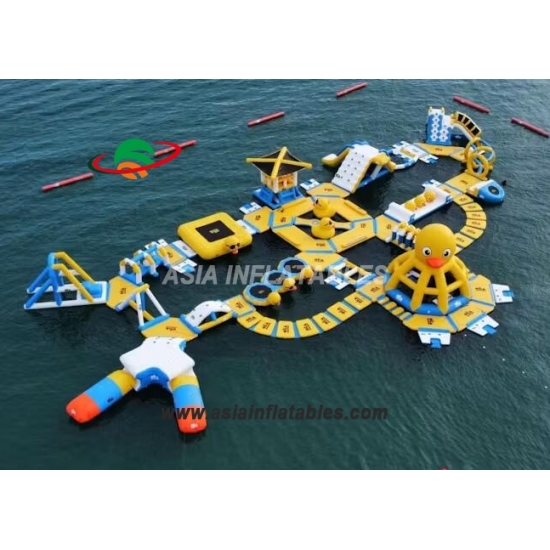 Yeni Stil Sarı Ördek Şişme Su Parkı Yüzen Şişme Su Parkı