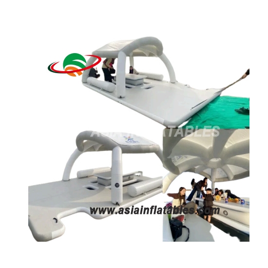 Bu yüzen ada platformu mat, masa, sırt dayanakları, şezlonglar, çadır barınağı, yüzen iskele vb. ile birlikte gelir, tek bir öğeyi kendiniz birleştirebilirsiniz.